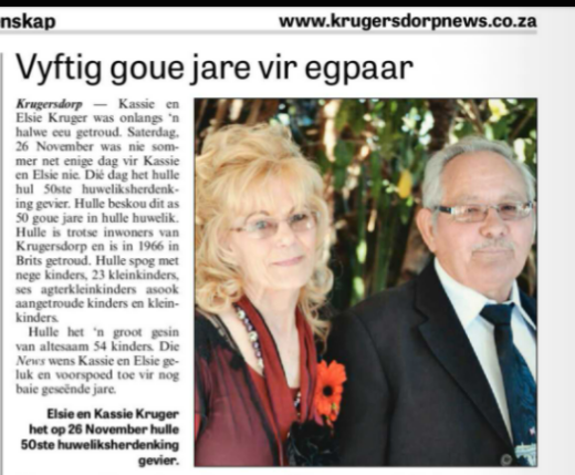 Met herkenning aan die Krugersdorp Nuus Gemeenskap Koerant 9 Desember 2016.